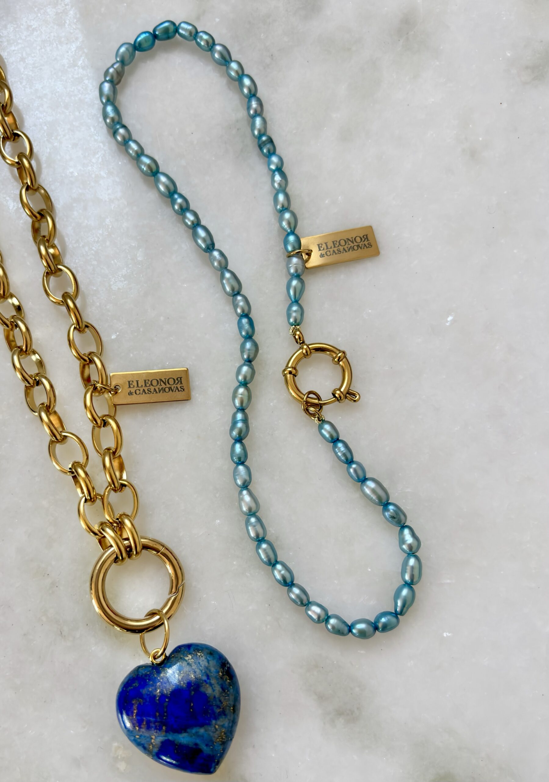 Vintage Blue Natural Pearls Necklace with 18/24k Goldplated closure