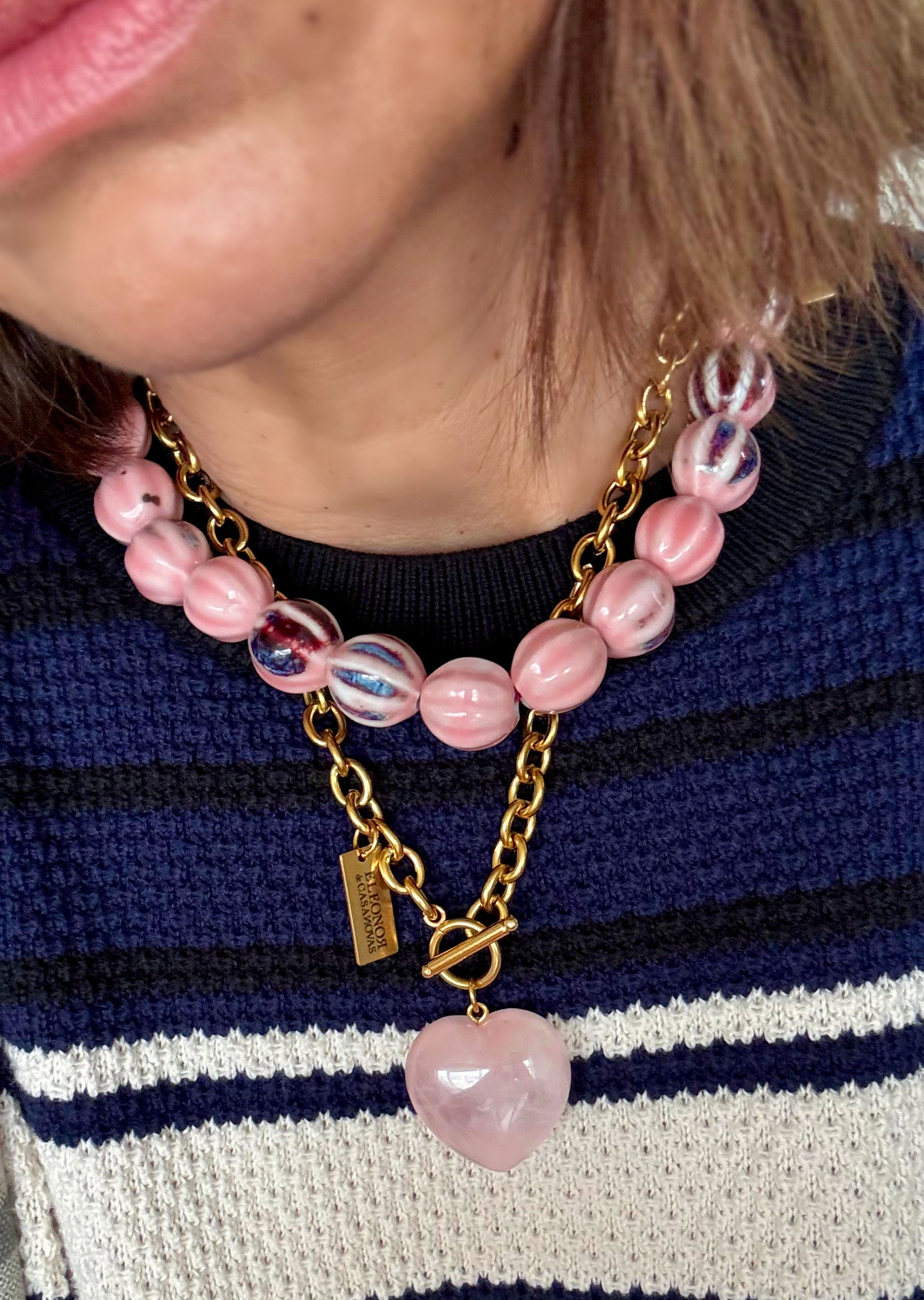Tip de estilo: llévalo solo como pieza protagonista o combínalo con cadenas doradas o plateadas para un look más sofisticado