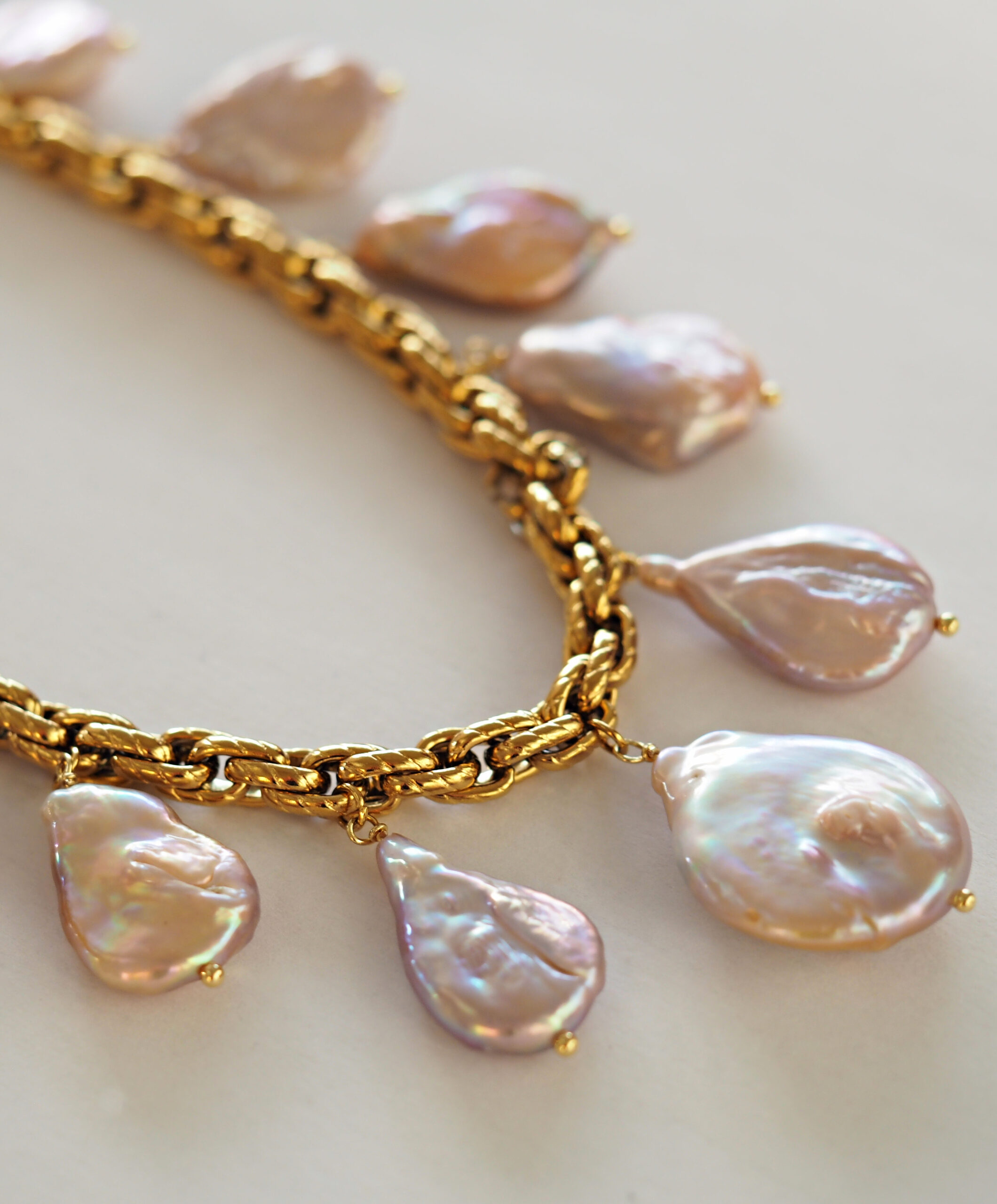 Importante: Al tratarse de perlas barrocas naturales de agua dulce, cada perla es única y puede presentar ligeras variaciones de forma, color o pequeñas irregularidades, lo que hace que cada collar sea único y exclusivo.