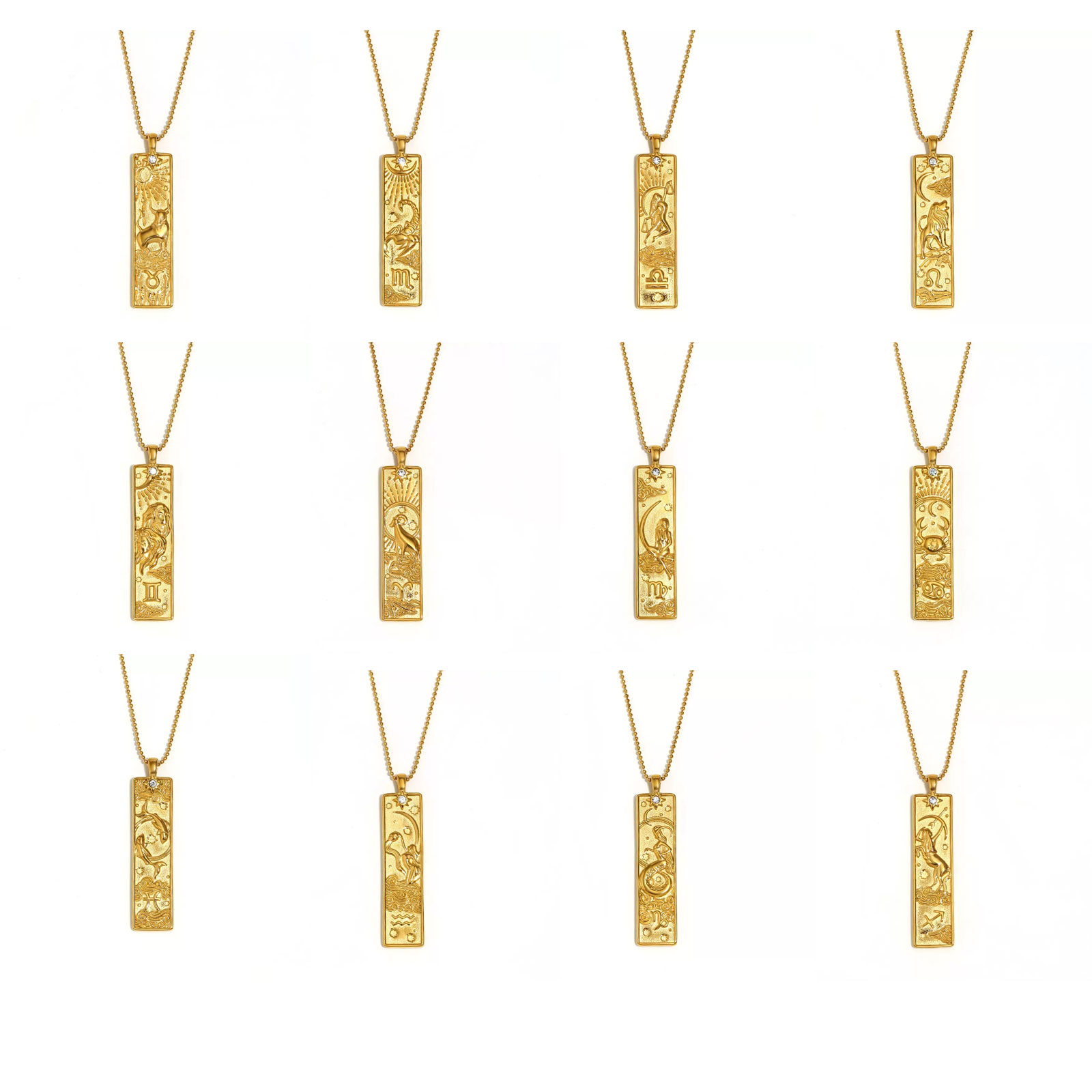 Collar zodiaco con colgante de tu signo del horóscopo en forma de barra y cadena fina de bolitas