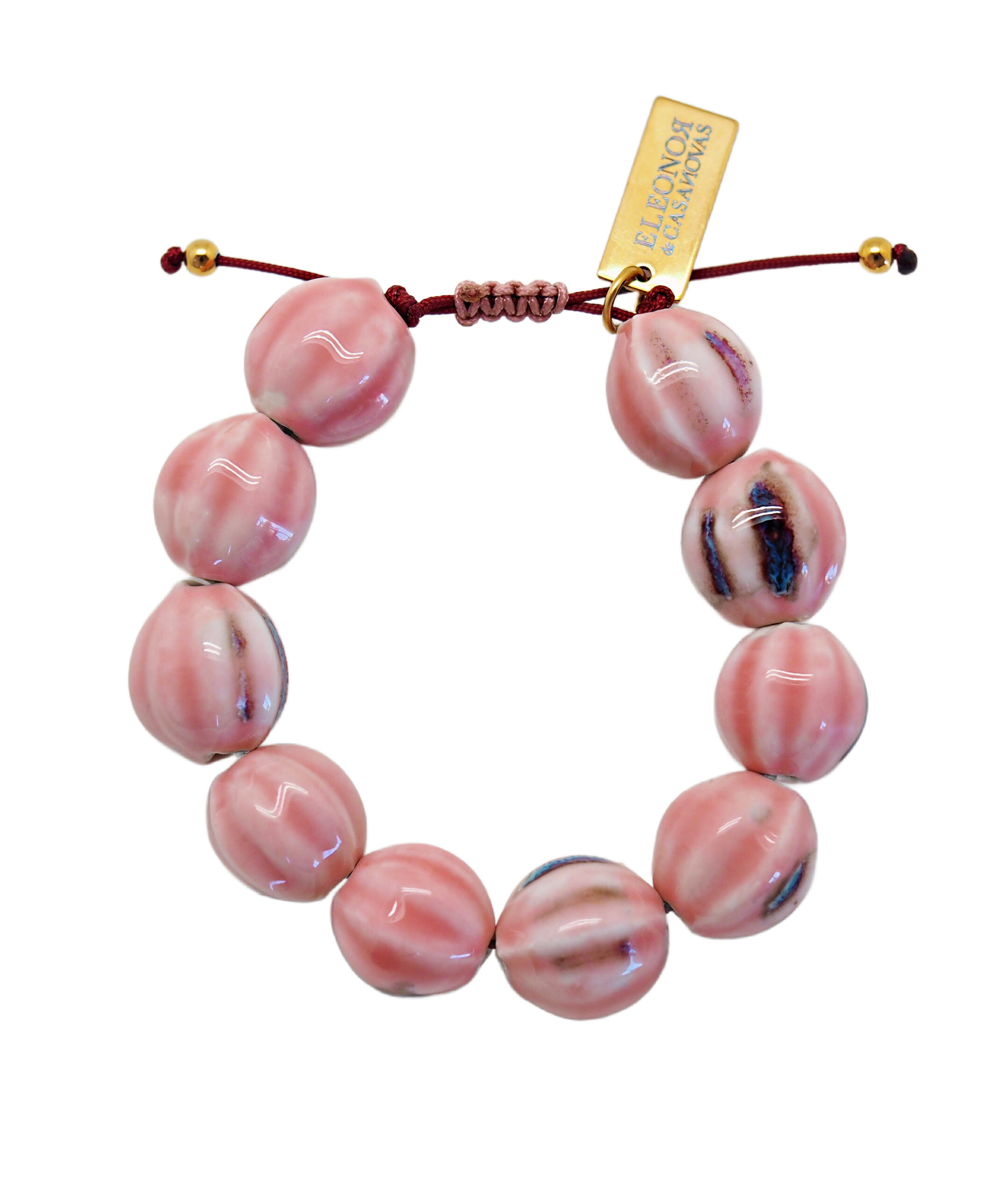 Pulsera ajustable hecha a mano con bolas de cerámica en tonos rosa pastel, inspirada en el atardecer de Saint-Tropez