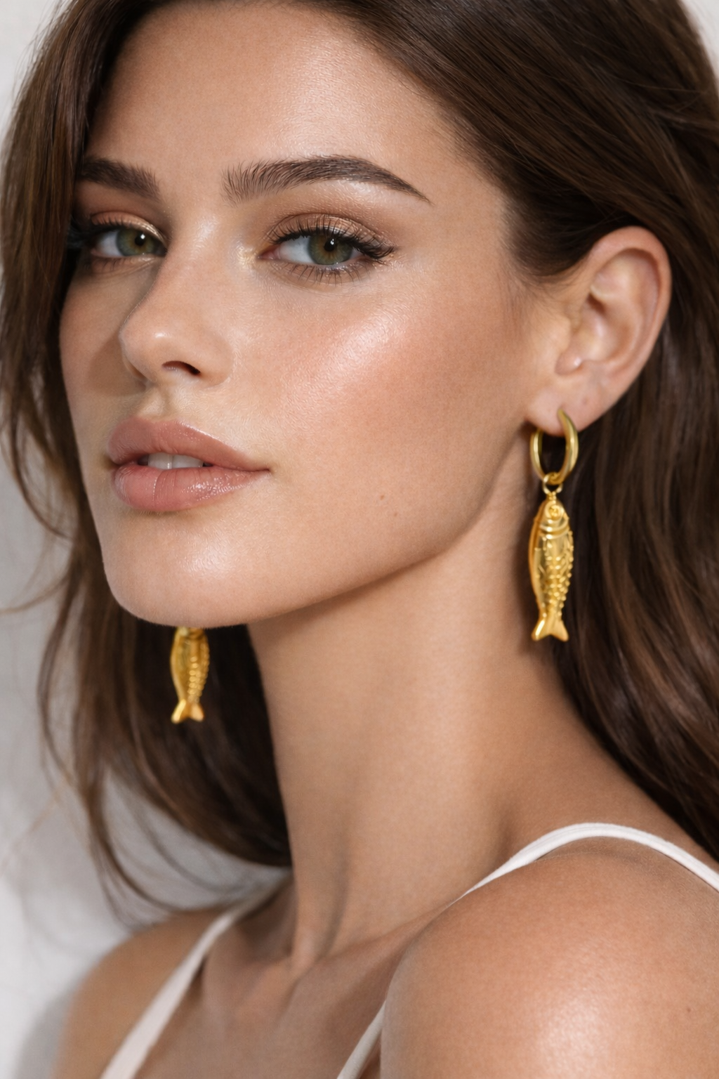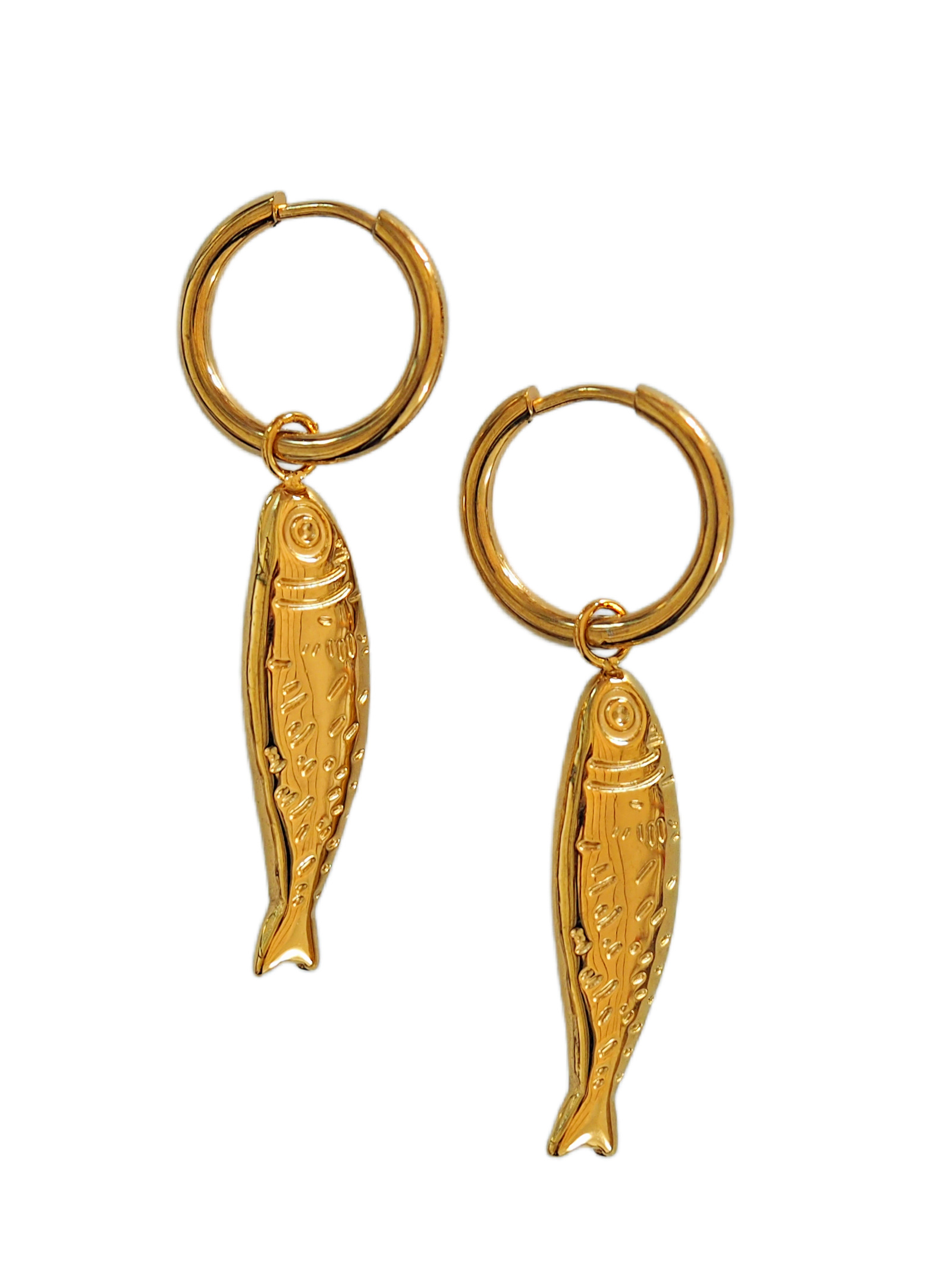 Aros de acero inoxidable chapado en oro con pez de acero inoxidable chapado en oro